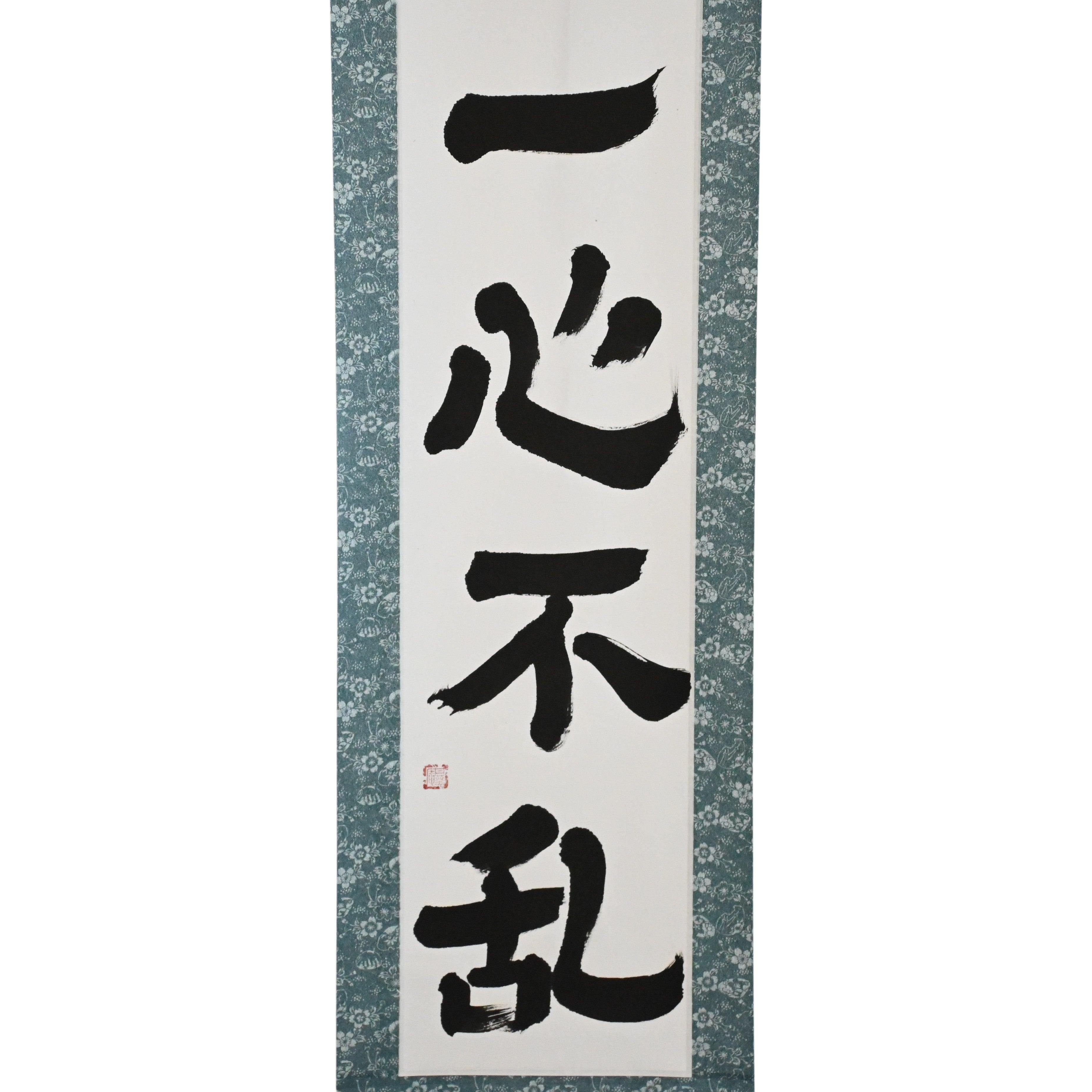 This Japanese calligraphy scroll showcases the powerful phrase 一心不乱 (Isshin Furan), meaning “undivided focus” or “with single-minded devotion”. It captures the essential mindset of martial arts — the ability to eliminate distractions and commit wholly to the moment.