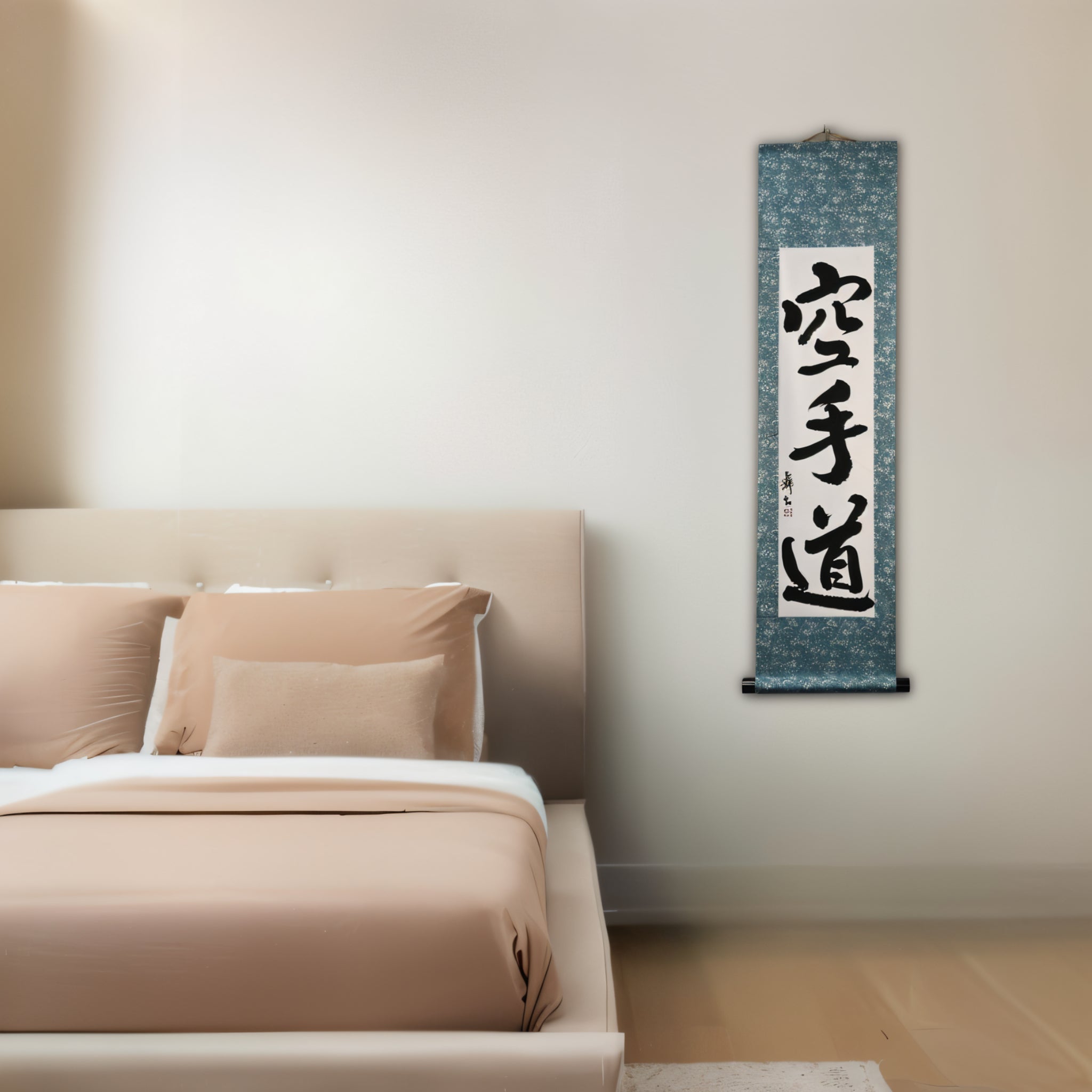 This calligraphy scroll features the powerful phrase 空手道 (Karate-do) — not merely a martial art, but a lifelong journey of discipline, respect, and inner strength.