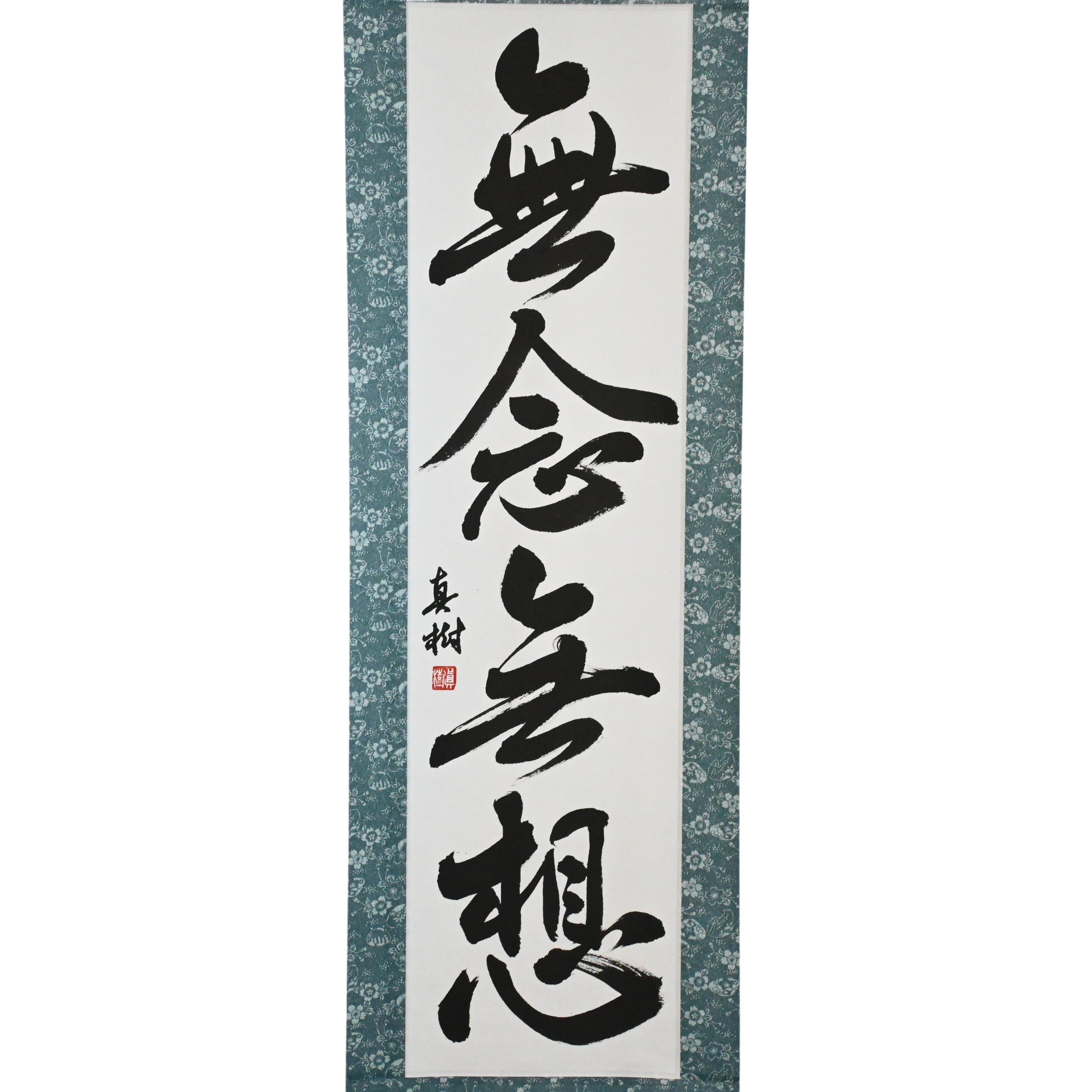 This Japanese calligraphy scroll presents the profound 禅 (Zen) principle 無念無想 (Munen Musō) — a state of mind free from thought and distraction, fundamental to the Samurai’s way. Rooted in both 禅 (Zen) practice and 武士道 (Bushidō), 無念無想 allows the warrior to act with pure presence, responding intuitively and decisively in every moment.