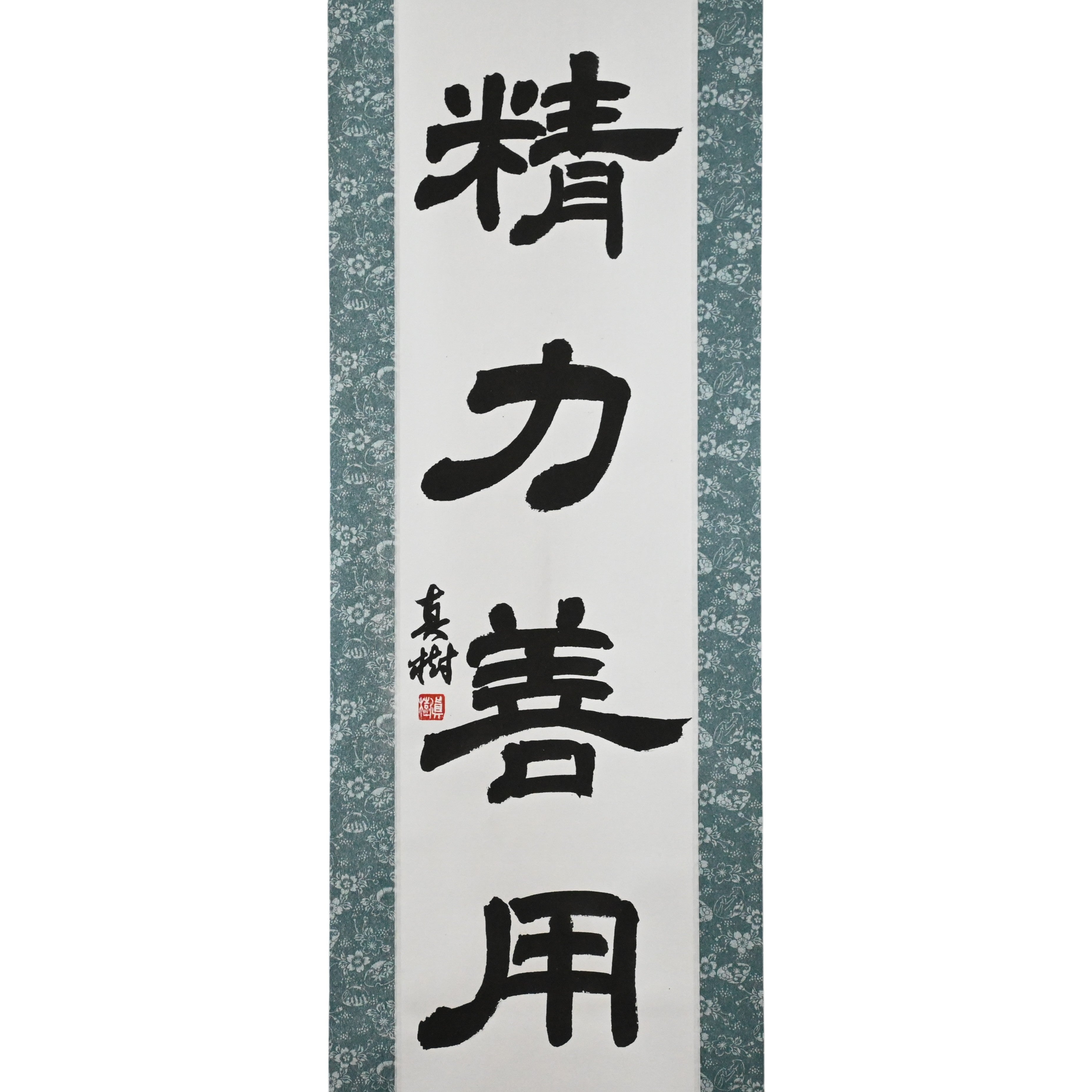 This Japanese calligraphy scroll features the timeless phrase 精力善用 (Seiryoku-Zenyō) — translated as "Maximum Efficient Use of Energy". It is one of the two core principles of Judo, alongside 自他共栄 (Jita-Kyōei, "Mutual Welfare and Benefit"), both established by Judo’s founder, Jigoro Kano (嘉納治五郎).